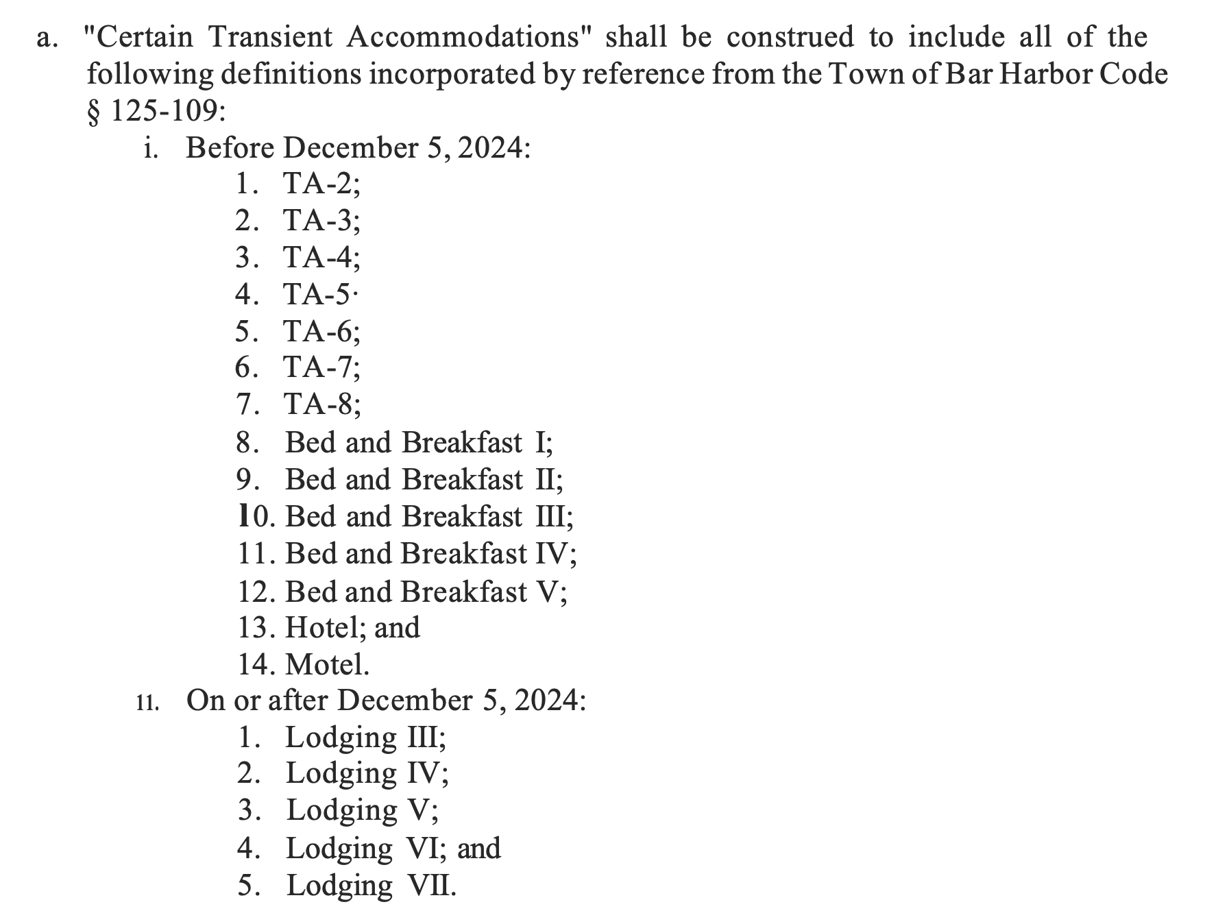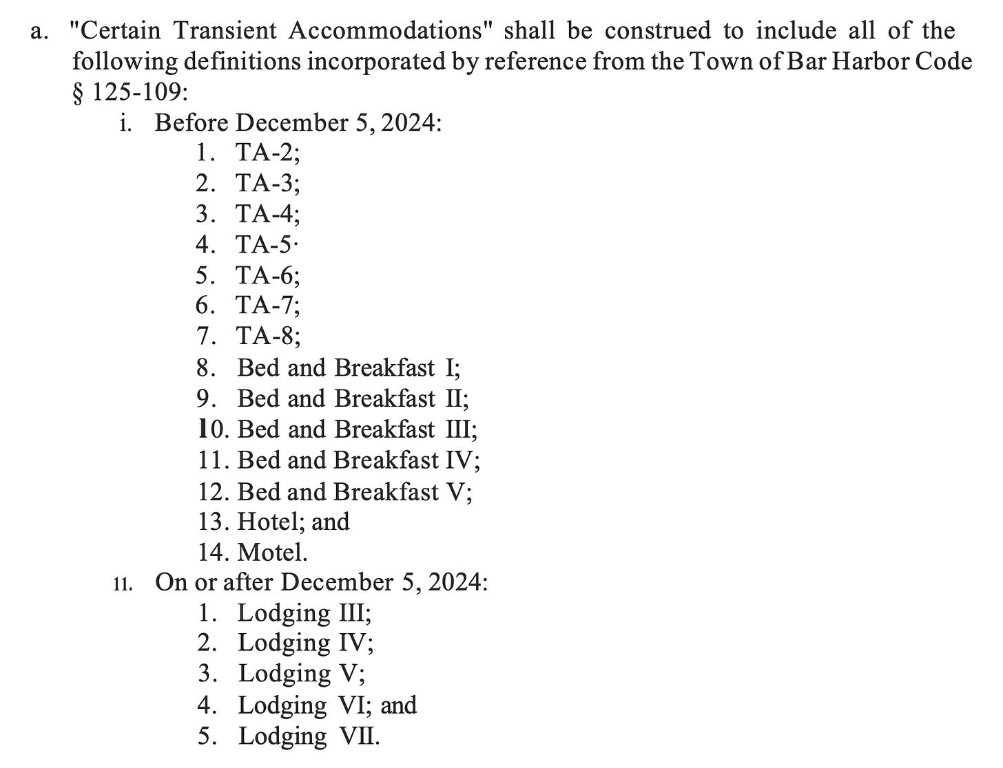 The types of lodgings (transient accommodations) included is defined per the effective date of new changes to lodging definitions, December 5. Those definition changes were approved by voters at the November election and come into effect 30 days after the election. This created a bit of discussion about how the 60-day moratorium would cover the differing terms.