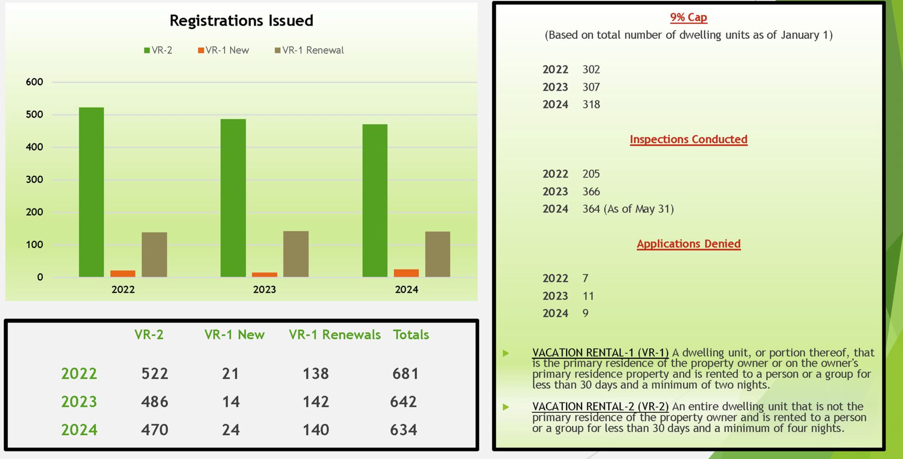 According to Friedmann some property owners are giving one-percent ownership on a deed and calling it a residence so that they can apply as VR-1s, which is not capped.