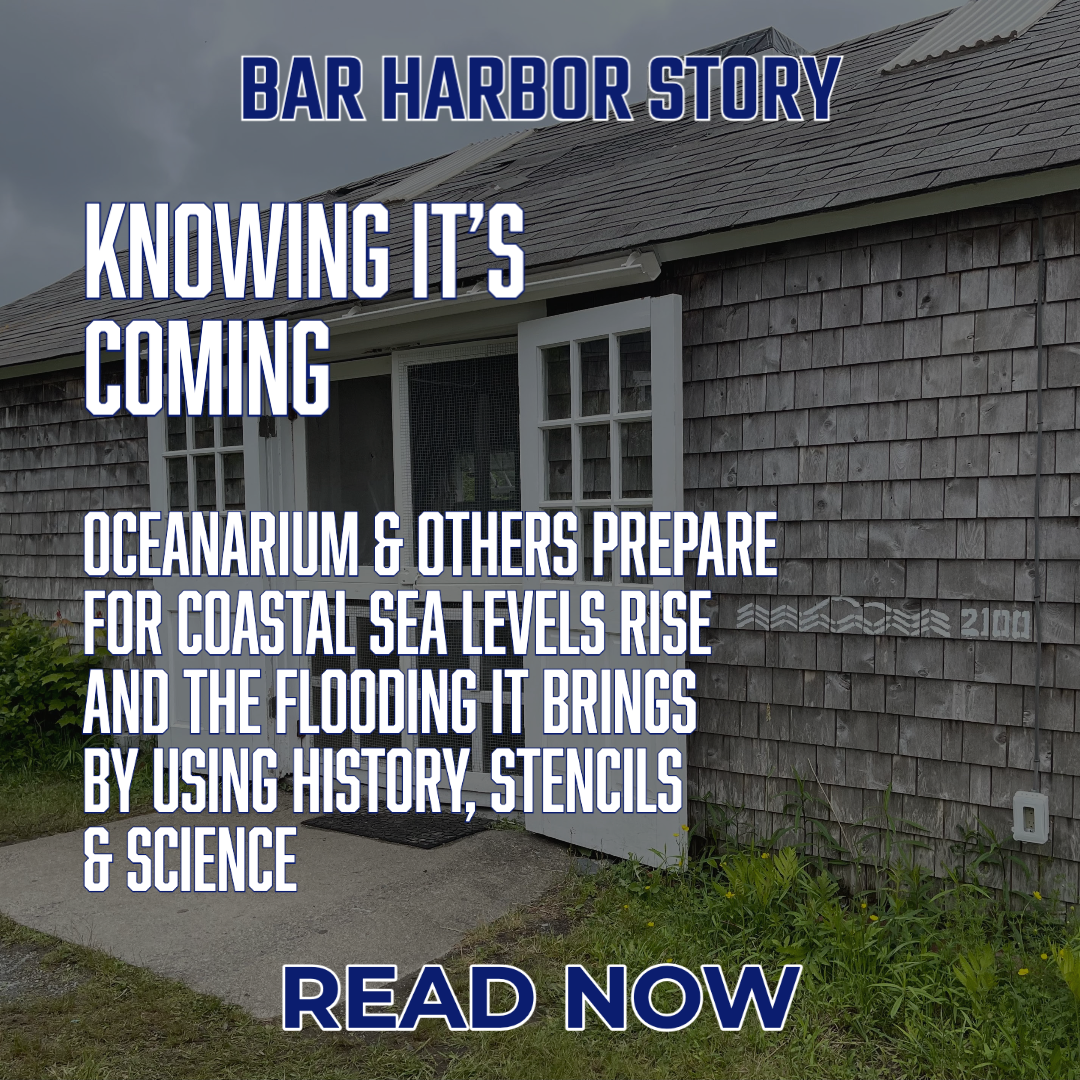 He’s not just ahead of his time because he’s dealing with sea rise at his low-lying Oceanarium, a nonprofit museum that just opened last month, a property that’s surrounded by tidal marsh. He’s also ahead of his time because he’s working collaboratively with other groups and agencies to understand what’s happening at the Oceanarium, to educate others about what happens on their properties, and to actively empower Mount Desert Island to come together and think about what rising sea levels have meant to this community and will mean for it in the future.