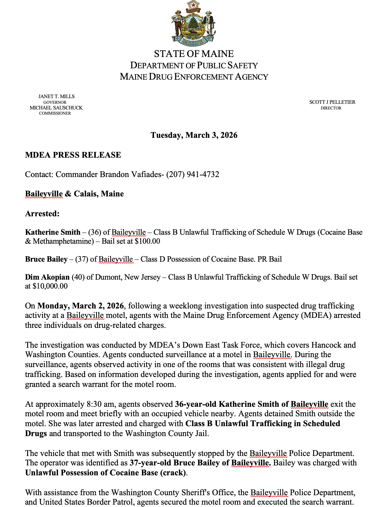 MDEA Arrests Three on Drug Charges in Baileyville