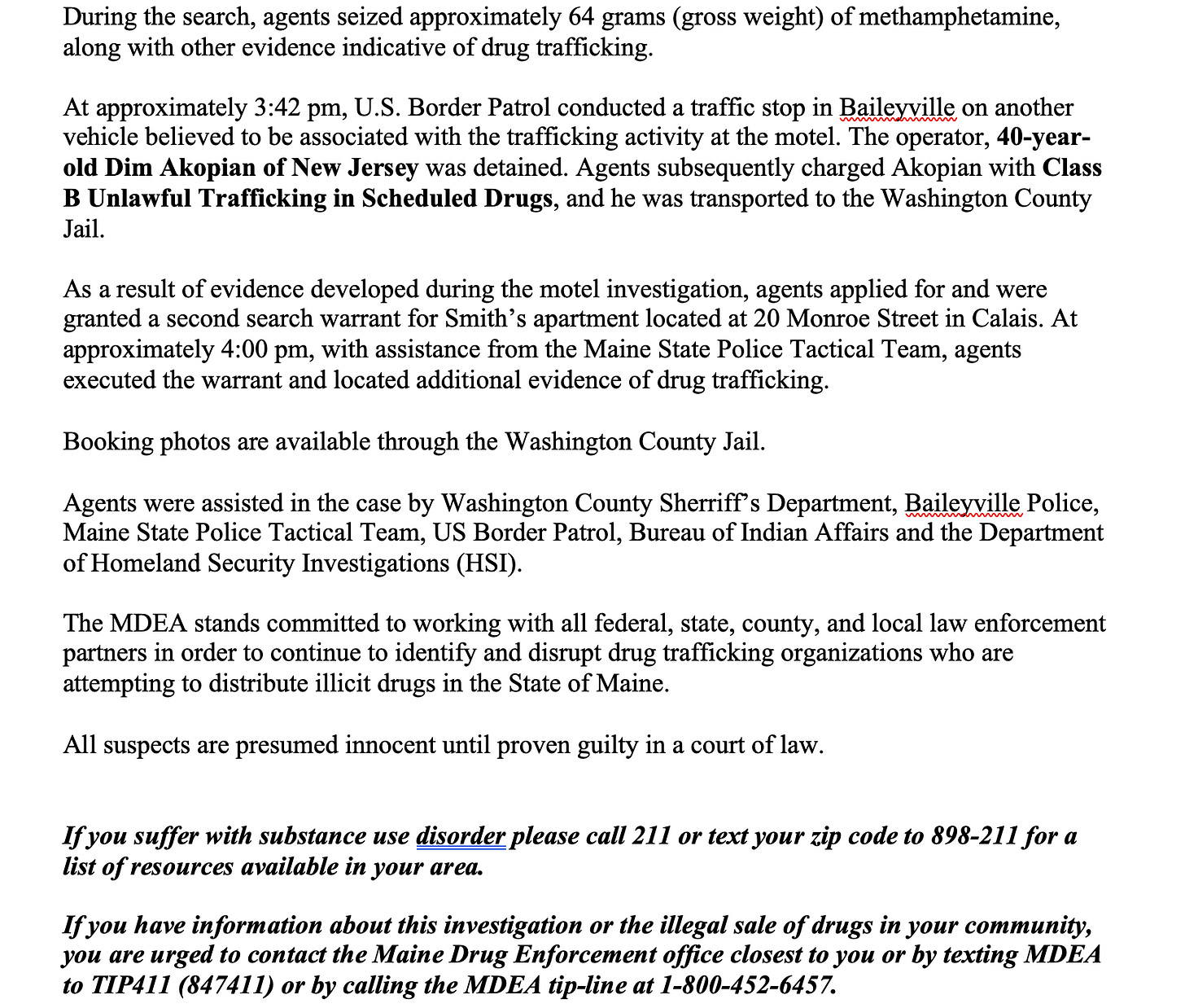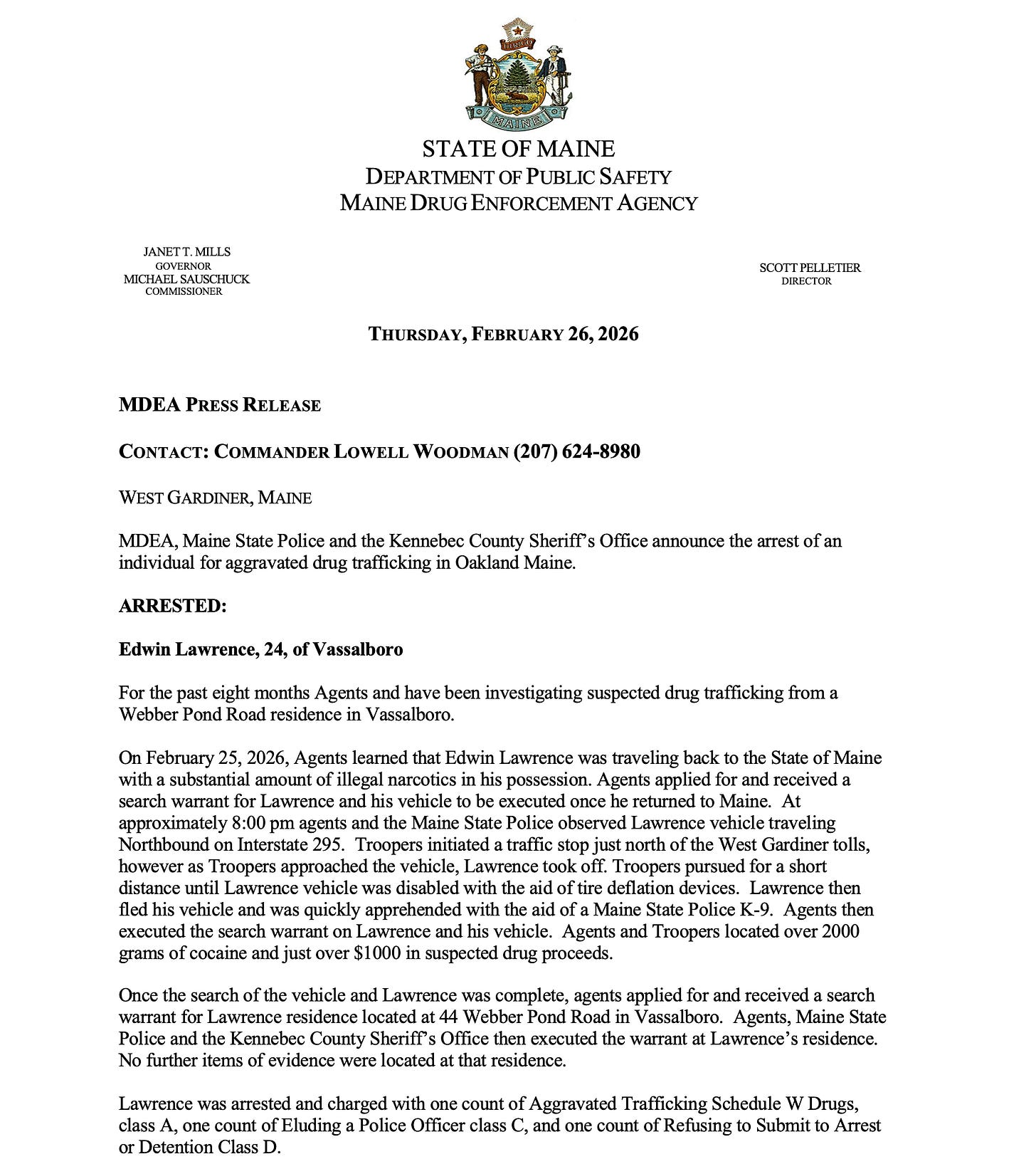 MDEA Arrests Vassalboro Man for Aggravated Drug Trafficking After Vehicle and Foot Pursuit