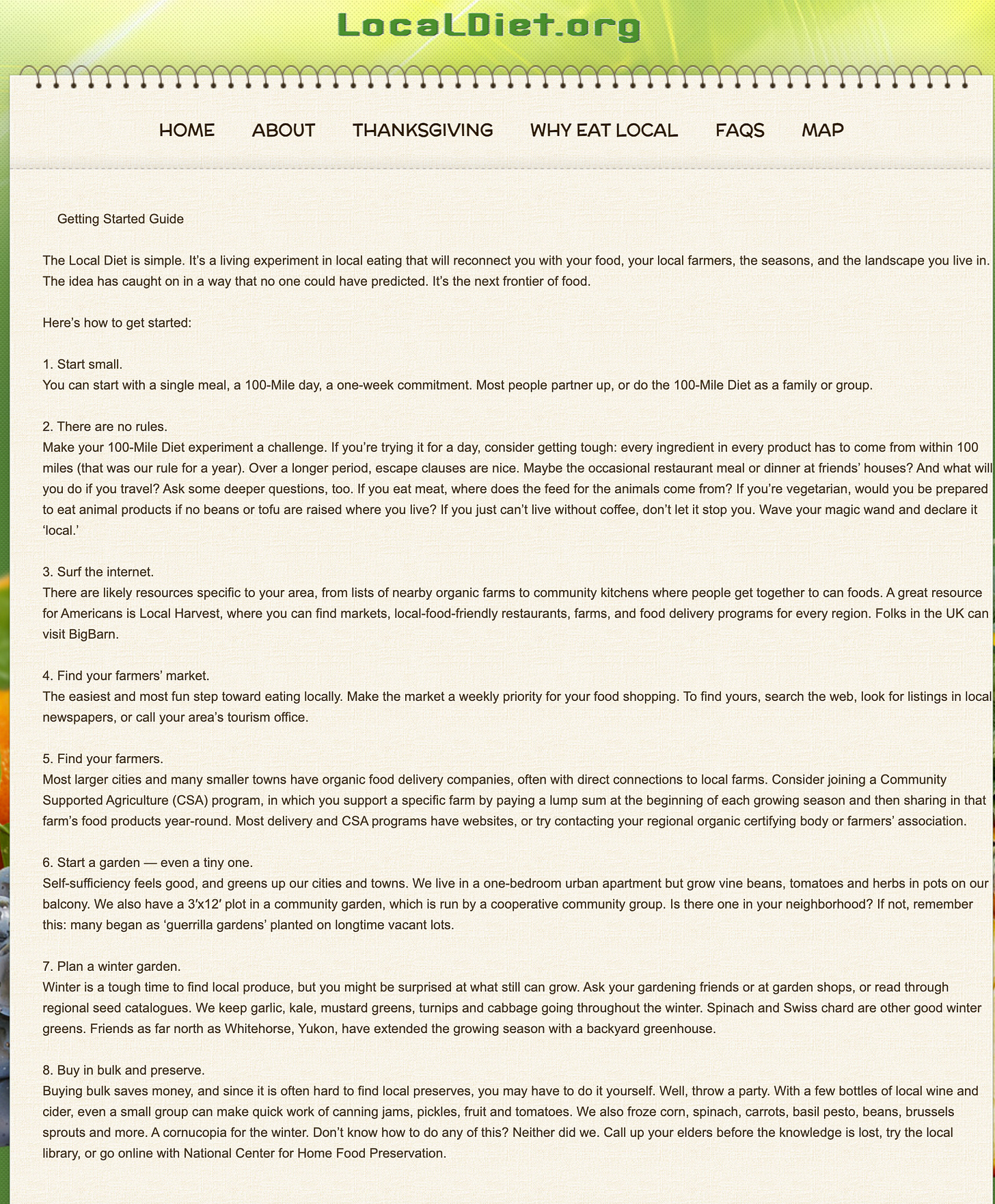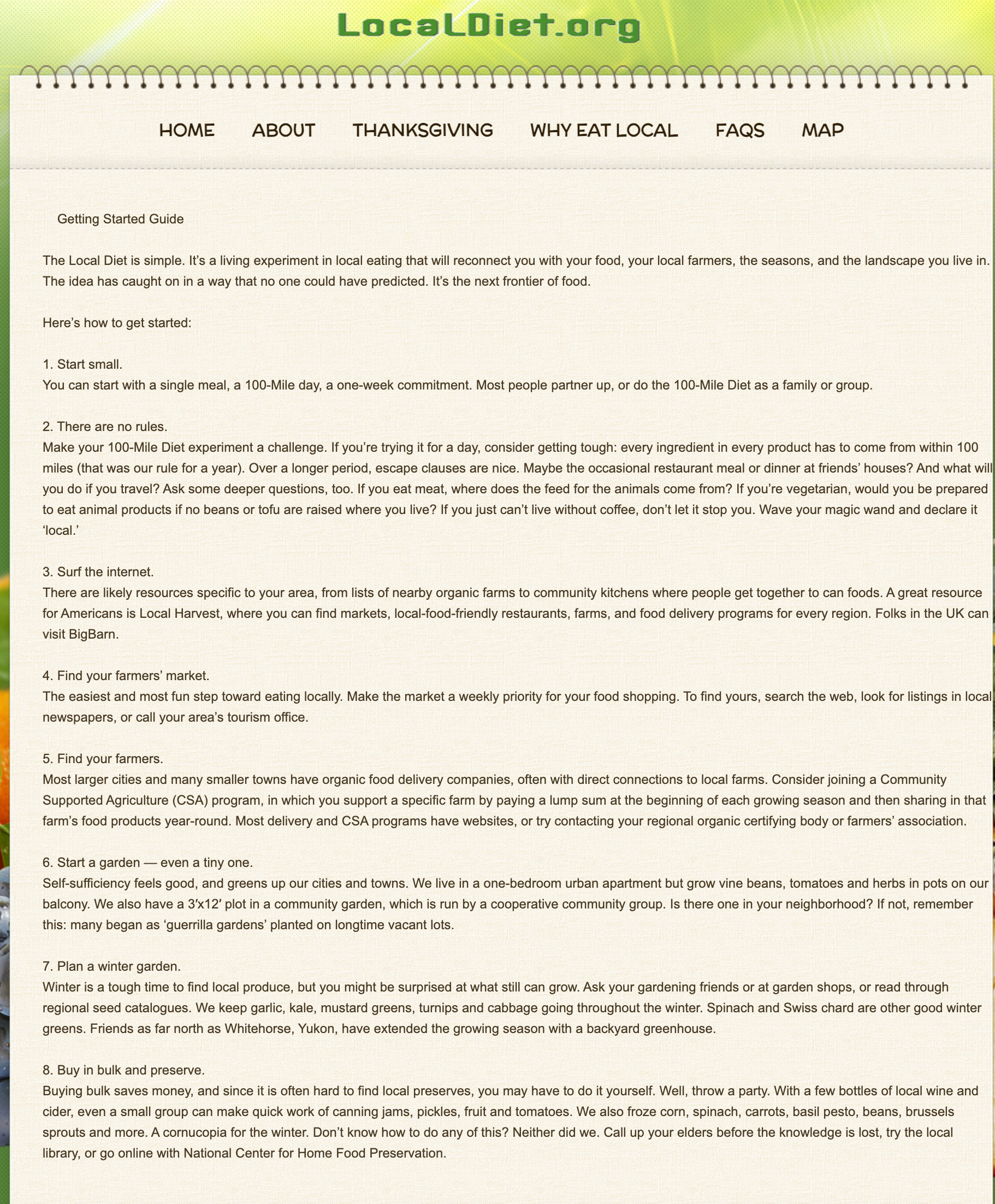 Since the early 2000s there’s been a resurgence of talk and writing about 100-mile diets. It’s basically about eating food made or sourced or grown locally and supporting regional farms and harvesters.