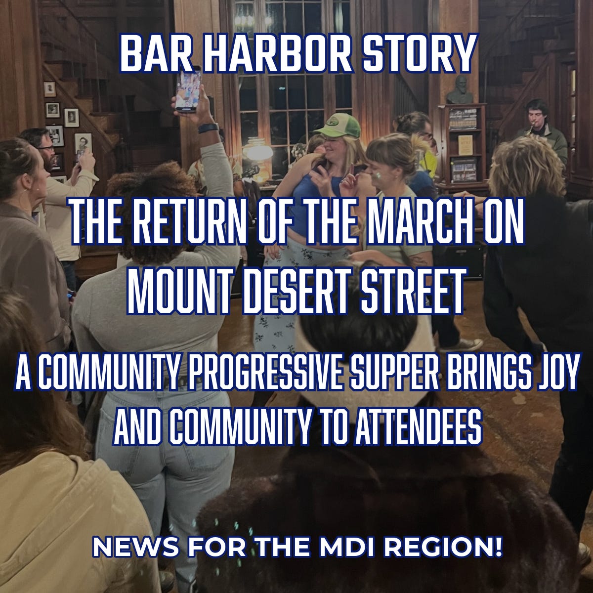 BAR HARBOR—Tonight, Wednesday, March 19, marked the joyous return of the "March on Mount Desert Street," a beloved community progressive supper that brought together friends, neighbors, and new acquaintances in a celebration of togetherness and local flavor. This event was a heartwarming reminder of the strength and unity within our community.
